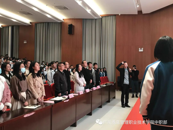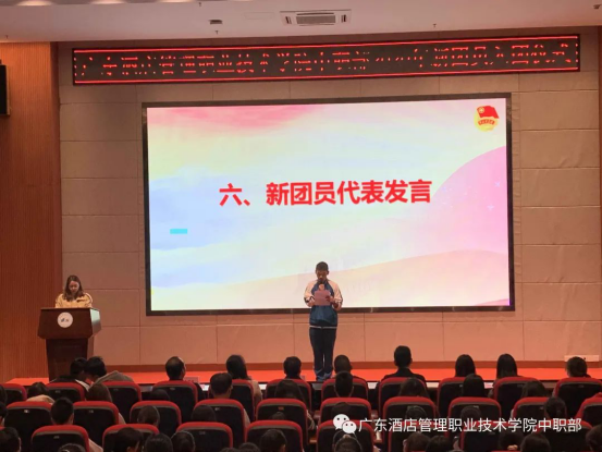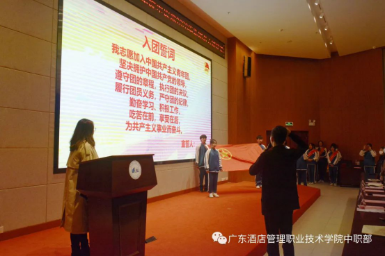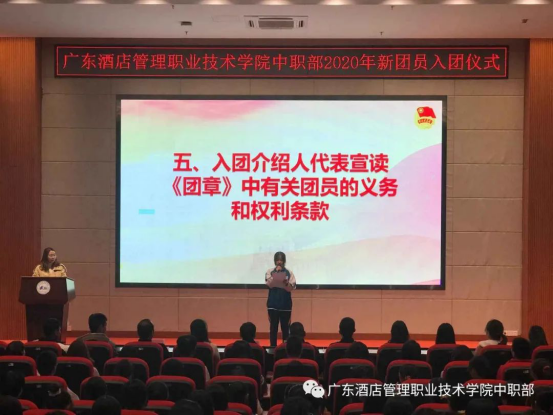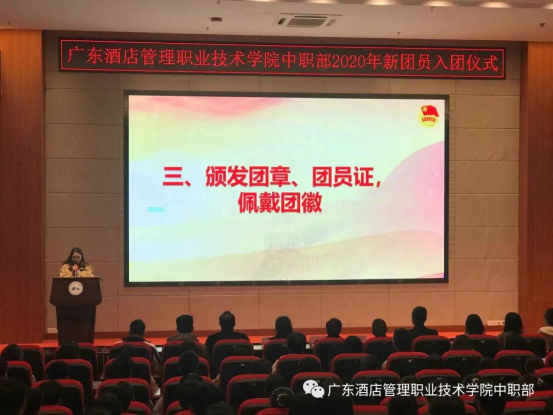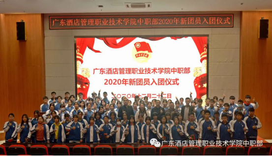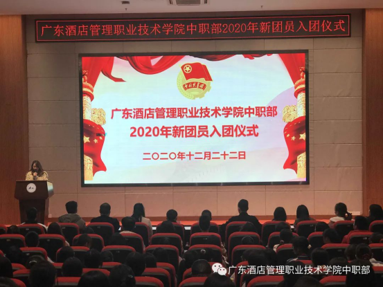 2020年12月22日19:00,广东酒店管理职业技术学院中职部2020年新团员入团仪式在学院行政楼学术报告厅顺利举行。