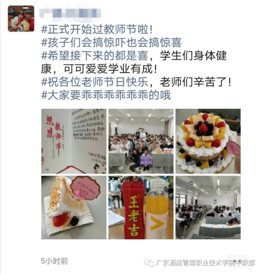 在这个感恩的日子里,中职部学子们用自己的实际行动,为一直以来诲人不倦、循循善诱的老师们送上祝福。